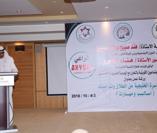 تقيم رابطة الاجتماعيين الكويتية بالتعاون مع الجمعية الخليجية للاجتماعيين ورشة عمل تحت عنوان "حماية الأسرة الخليجية من الطلاق وتداعياته-(اساليب ومهارات)"، برعاية معالي وزير الشؤون الاجتماعية ووزير الدولة للشئون الاقتصادية الاستاذة/ هند صبيح براك الصبيح، وبحضور الوكيل المساعد لقطاع التنمية الاجتماعية الاستاذة / هناء الهاجري، وعدد كبير من الشخصيات الكويتية والخليجية ورؤساء الجمعيات والروابط في دول مجلس التعاون الخليجي